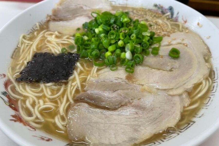 大分を中心に支店やフランチャイズを展開しているのがこちら。 今回訪れたのは中津駅からもほど近い、いわゆる総本山の店舗です。 創業は1958年と歴史は長く、初代店主さんはラーメンでなくて寿司職人さん。 博多豚骨ラーメン店「博龍軒」を営んでいた甥の指導を受けて宝来軒が始まったそうな。 五右衛門風呂の釜で作り上げられるスープは牛骨も含まれており、臭みが少ないなめらかでクリーミーな味わいを楽しめます。 博多ラーメンとはまた違いそうですね^^ --------------------------------- 注文から5分ほどで到着。 丼の表面を覆うようにどっさりとトッピング。 若干渋滞している気もするが、、、。 こんな豚骨ラーメンは初めてみたかも。 ほのかに豚骨の香りがしてきますね。 【スープ】 白濁とした豚骨スープかと思いきや黄色味を帯びてますね。 豚骨の旨味がありつつサラっとしている。 牛骨・鶏もブレンドされているらしいけど、素人にはそこまでわからなかった。 油分も少な目で塩味もちょうどいいね(*‘∀‘) 他のトッピングが冷たいものもあるので早めに味を堪能するといいかも♪ 【麺】 美白な極細麺。 長めでスルスルとはいっていきます。 スープも麺にのって、のど越しもいい★ 加水率が低いので中盤以降はかなり麺が柔らかくなりますね。 注文時は固め推奨♪ トッピングやお店の詳細は ブログ【いとログ】にて掲載中! 「いとログ 宝来軒」で検索を!!(*'▽')