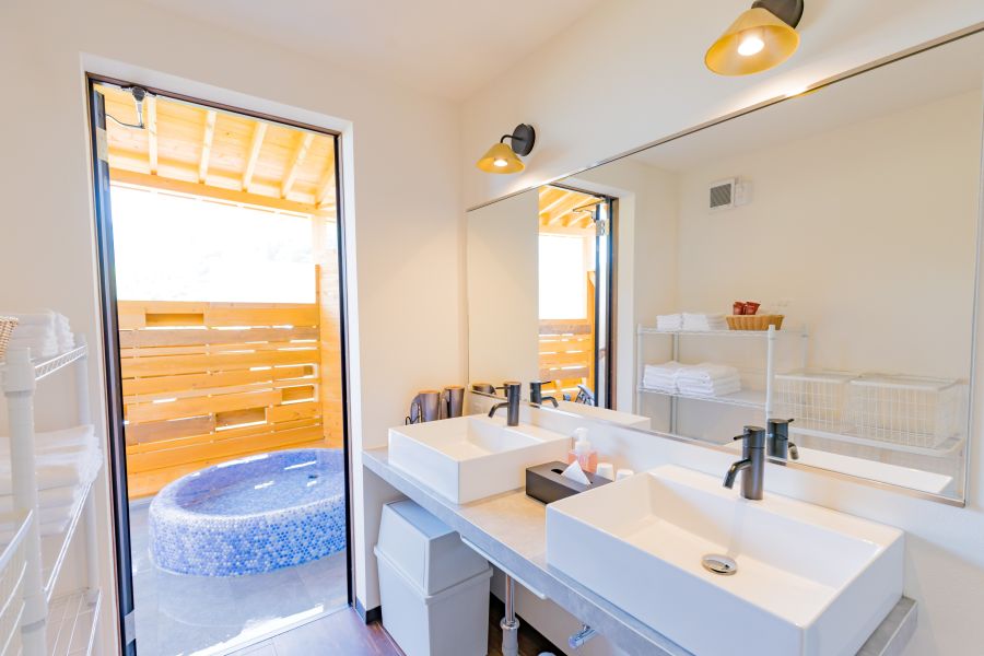 静かな場所で、景色が素晴らしいです。中はシンプルな木のデザインでとても居心地が良くリラックスできます。家族でウッドデッキでBBQするのは最高でした。温泉の露天風呂もあり、都会から離れてゆったりと時間を過ごすのに素敵な場所だと思います。スーパーやコンビニは近くにないので、到着前に食料品やお菓子を買った方がいいです。