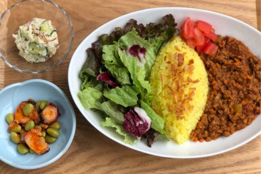平日の12時前後に友人と来訪。 入り口近くにメニュー表があります。席を確保した後に事前に注文。 ブザーをもらうため自分で取りに行くスタイルです。 店内はドライフラワーや可愛い絵などが飾られてとてもおしゃれでした🌸 古民家カフェ好きにとってはたまらないカフェだと思います。 味も美味しかったのですが、唐揚げが少し生っぽく(中身が少し赤かったです)感じましたので確認のほどよろしくお願いします。