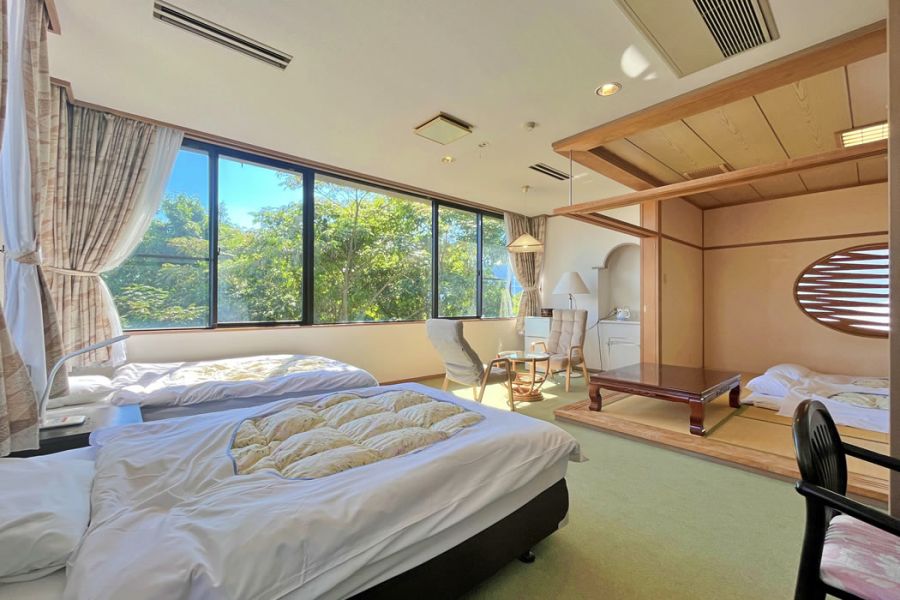 浜四津敏子似の女将さんが切り盛りする、ホテル。女性の従業員の方は、結構たくさんいて、とても親切。フロントではなくて、食堂が受付になっていて、チェックイン時に支払うシステム。朝飯の洋食・和食と時間を決めるシステム。昭和の洋館の佇まいがとても素敵。ホテルは、昔の保養所っぽい施設を居抜きで使用か?建物は非常に綺麗。客室の掃除は行き届いています。風呂は、大浴場を使用するシステム。入り口は、靴を脱いで入るシステム風であるが、実は、靴のままで入るシステム。数年前に、土足のまま入るシステムに変更した模様。夕食は、近江牛を自分で焼くシステム。肉はなかなか美味しい。ご飯も美味しい。おかわり自由?朝食は、洋食と和食が選択できるシステム。洋食を選択したところ、テーブルでパンを自前でトーストする画期的なシステム。費用は、比較的リーズナブル。ビワイチの拠点としても良いのかも。wifiも調子が良いです。建物の作りがやや不思議で、あまりバリアフリーではない。102号室は、とても広く、快適。ソファーベッドで3人宿泊。