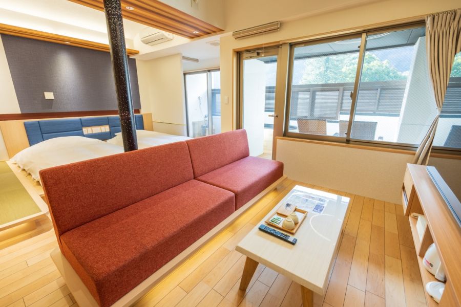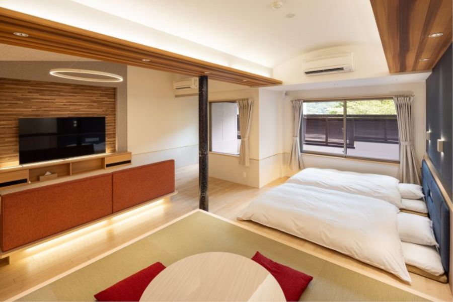 箱根温泉の玄関口として知られる箱根湯本駅にほど近く、塔の峰を望む緑に囲まれた閑静な高台にある宿。2024年3月,7月とお部屋をリニューアルしより快適な滞在をご提供いたします。