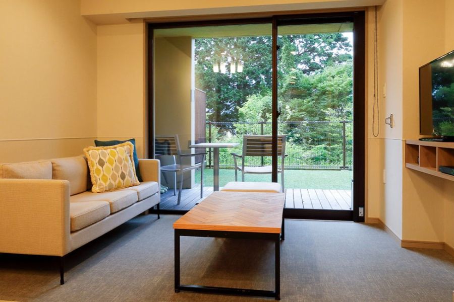 四季折々の表情を醸す箱根の森に包まれた上質な時間。大涌谷から引湯した白濁の温泉大浴場に加え、開放感ある客室全室には、森林を望む客室露天風呂と専用テラス付き。屋内ドッグランをはじめ、3か所のパブリックドッグランを併設。丁寧に作り上げた創作和食料理は、夕朝ともにお部屋でご堪能いただけます。