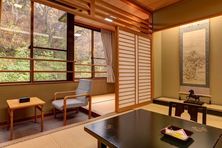 年末にひさびさに家族で集まり、お邪魔しました。 若い集団から会社の忘年会?の集団や老夫婦など比較的客室は埋まっていたような印象です。 お風呂は白濁でヌルッとした泉質でとても気持ちよかったです。 今だけなのか分かりませんが、露天風呂が閉まっていたのがかなり残念でした。温泉の醍醐味といえば露天風呂なのに、、! 夕食は客室とは別の場所での部屋食でした。少し品数が多すぎる気がしましたが、美味しかったです。 夜は恒例の福引大会がありました。 箱から3つボールを引いて3色赤を引くと大当たりで宿泊券がもらえます。 私たち家族は全員ハンカチが当たりました!夜21時くらいからのイベントでしたが、ほとんどの宿泊客が集まっていた印象です。スタッフさんも明るくて盛り上がっていました。 ひとつ苦言を申し上げるとすると、客室が川に面した部屋だったのですが、川の流れがうるさすぎてほとんど寝られず、、、。雪解けの水が山から流れている時期だけなのかどうなのか分かりませんが、割と寝付きのいい自分でもかなり気になりました。自然の音なので仕方ないのかもしれませんがかなり気になりました。次行くとしたらあの部屋は勘弁したいです。