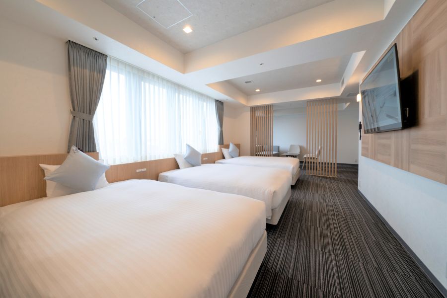 妻と1泊させていただきました。 客室は角部屋のプランで予約していたこともあり明るく、開放的で広く良かったです。 強いて要望を上げるとすれば、 トランクケースを置くラックがなかった点とバッグを引っ掛けておくフックが全くなかった点は対応していただけるとより良くなるように感じました。 立地は天神駅からも安国駐車場からも程近く快適でした。 また機会があれば利用します。