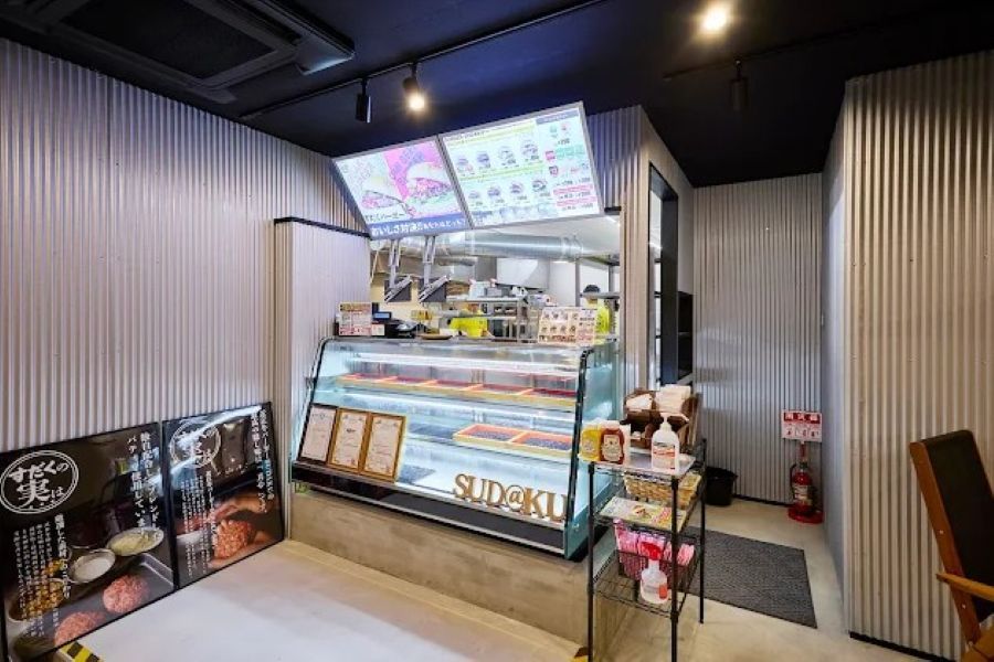 この日は前夜からのしっかりした雨で仕事作業が午後からになってしまいました。 午前中は営業所により10時位には現場に向けて出発 少し早めのランチをとることにしました。 せっかく湖東に来たんだからやっぱり近江牛を食べなきゃ始まらんでしょー笑笑 竜王の三井アウトレットパーク滋賀竜王のすぐ近く近江牛を使ったハンバーガー店があるのを発見! その名も『近江牛バーガー SUDAKU』さん 滋賀県はもとより大阪、京都始め関東圏にも近江牛を使った『近江焼肉 すだく』として展開されていてフランチャイズ店も含めると北は北海道から南は沖縄そして海外店もあり手広く近江牛を広めておられる人気の近江牛取扱店のひとつとして竜王の地でバーガー店をされています。 駐車場にデカいバーガーのモニュメントがあり黄色地に黒文字で100%OMI BEEF BURGER の文字とイラストでかなりド派手な看板が目印になります。 さて雨の中店内へ、店内にはイートイン出来るテーブル席に何故かハンモック? オーダーカウンターはお肉屋さんの様な雰囲気でバーガー以外にもコロッケなども扱っておられる様ですね。 せっかくだから今回は贅沢に頂いてみたいと「近江牛ダブルチーズバーガーのMセット下さい!」とオーダーします。 セットはフライドポテトのMとドリンクMでジンジャーエールをお願いしました。注文を受けパティを焼き始めます。 しばらくして紙袋に入ったバーガーとポテトにドリンクを持って「お待たせしました!」とプライスレスなスマイルと共に持ってこられました。最後ドアまで開けて頂いて雨の中助かりました。 とりあえず車内で開封して中身を拝見します。。 バーガーは近江牛100%のビーフパティがたっぷり2枚とチーズ、シャキシャキレタスにピクルス入りのタルタルとケチャップでとにかくはみ出す程のボリューム満点でバンズのクラウンには“SUDAKU”の焼印 オリジナリティが溢れていますね。 柔らかなパティはしっかり味付けられタルタルの酸味と濃厚なケチャップのしょっぱさで口の中で喰ってる感が溢れますね笑笑 フライドポテトも塩味がしっかりでMとはいえしっかり量のあるドリンクとしっかり満腹になりますよ。 この内容で近江牛ダブルチーズバーガー1,250円にMセットはたったの300円なので合計1,550円(軽減税率8%の場合)はかなりリーズナブルだと思いますね。 美味しかったです♪ ご馳走さまでした。