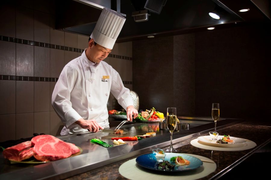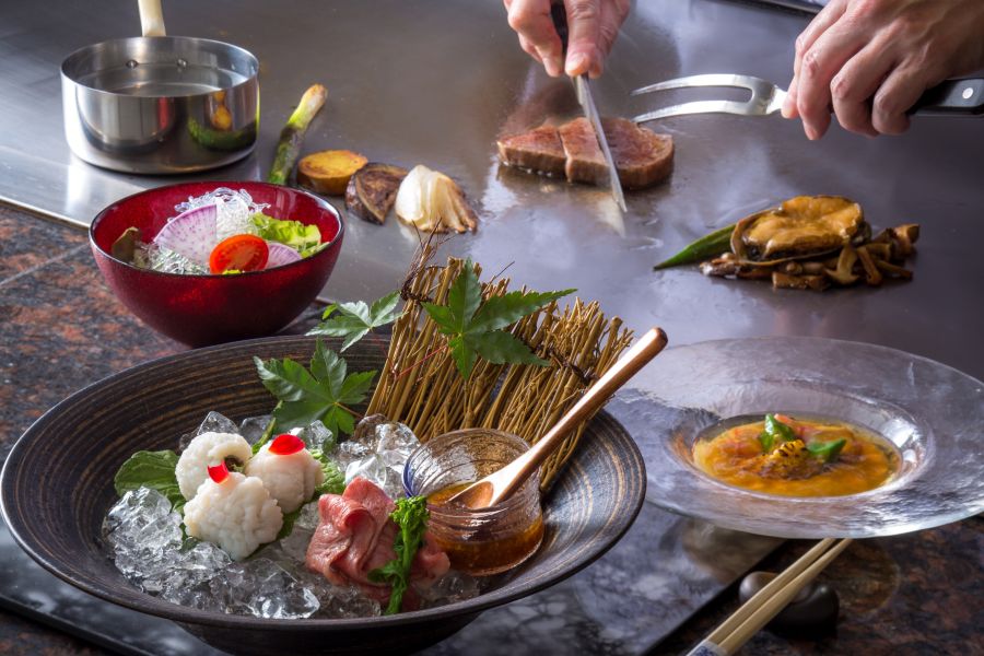 リーガロイヤルホテル京都「鉄板焼 葵」は、日本三大和牛の一つとして400年の歴史を持つ「近江牛」の認定指定店です。厳選された最高級の近江牛をはじめ、旬の魚介や瑞々しい京野菜など、選び抜かれた食材の数々を心ゆくまでご堪能いただけます。店内は全席カウンター席となっており、目の前で繰り広げられるシェフの華麗なパフォーマンスは、まさにライブ。食材が焼ける香ばしい音や香りを五感で感じながら、卓越した技で仕上げられる珠玉の一皿をお楽しみください。大切な方との記念日や、特別なひとときにふさわしい、贅沢な時間をお届けします。