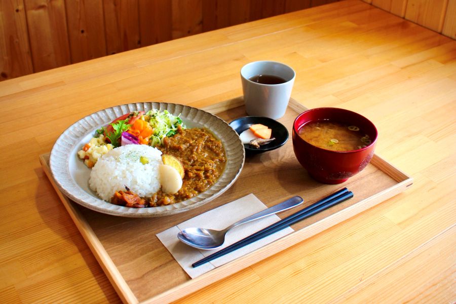 「まめくら」は、岩手県花巻市にある、おにぎりとお漬物を中心に、体にやさしい食事を提供するお店です。看板食材は、60年以上守り継がれてきた在来種「におい豆」を使った自家製味噌や味噌汁です。まめくら畑の科学肥料、農薬不使用の野菜からとる出汁や、毎日手入れされるぬか床など、食材と調味料にこだわったシンプルで心安らぐランチが人気。おにぎり定食や一汁一菜、野菜たっぷりのカレーセットまで、多彩なメニューが揃っています。「まめにくらす」をモットーに、豊かな日常を提案する温かな場所です。