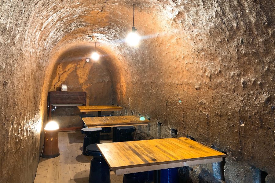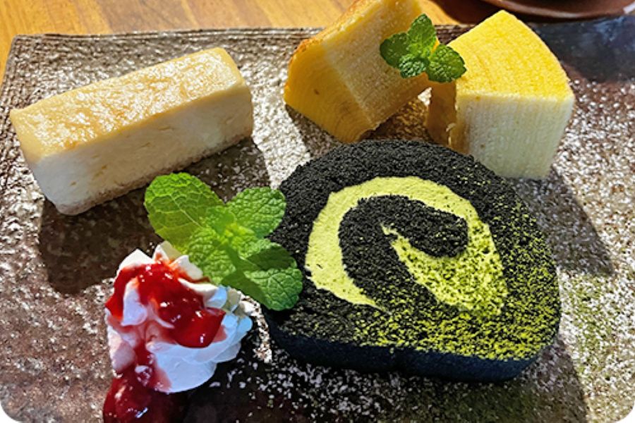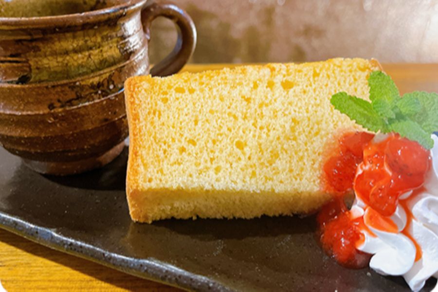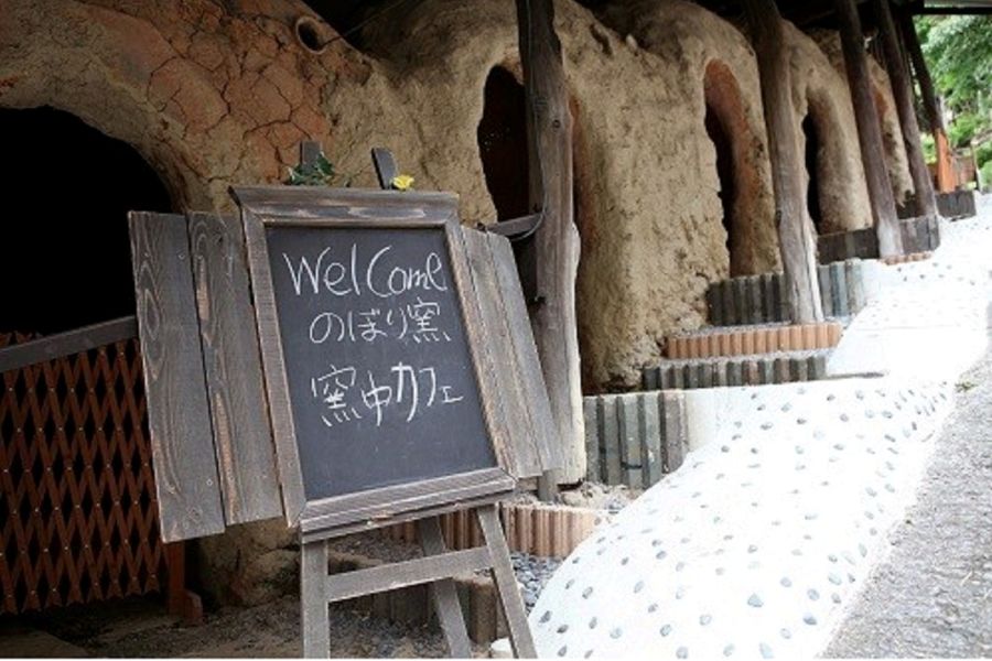 のぼり窯の中で飲食を楽しむことができるカフェです。利用方法はのぼり窯のすぐ近くにある売店でカフェメニューを注文し、指定の席で待っていると注文したものを運んできてくれるというシステムです。案内板もあるので行けばわかると思います。9月中旬の暑さが和らいだ頃に行きましたが、のぼり窯の中はひんやりとしており、涼しかったです。焼き物を焼く場所でゆっくりと過ごすという体験は普通はあり得ないかと思いますので、とても変わった体験ができました。竹炭ロールケーキとほうじ茶プリンのセットを注文しましたが、観光地だから手を抜いているという感じもなくとても美味しかったです。食器は信楽焼を使っており、可愛いたぬきのマグカップが印象的できた。マグカップは近くの売店に販売しており、製法も書いてありました。信楽に行ったら立ち寄るのがおすすめなカフェです。
