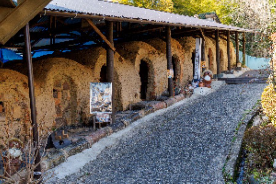 老舗の窯元内に全長22mの大登り窯がございます。長年窯として使用してきた蓄積で部屋の内壁には信楽焼と同じ緋色(スカーレット)の色がついており歴史を感じさせる雰囲気をお楽しみいただけます。