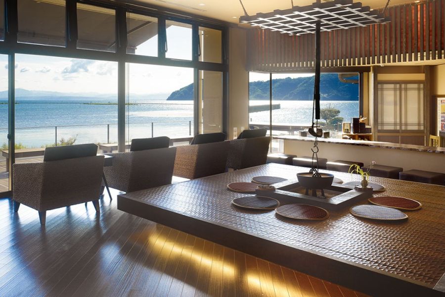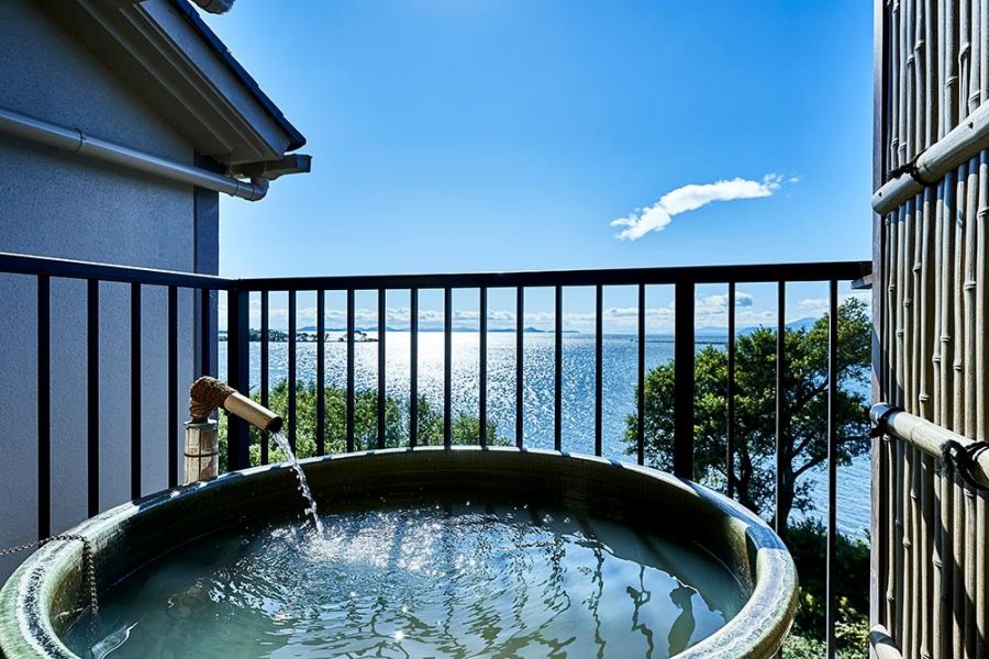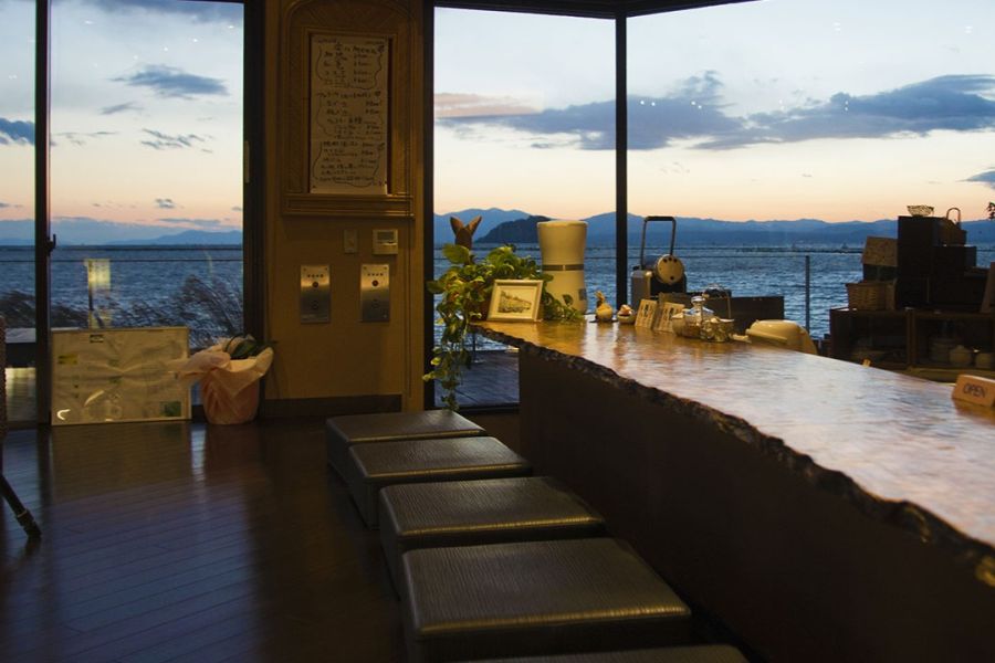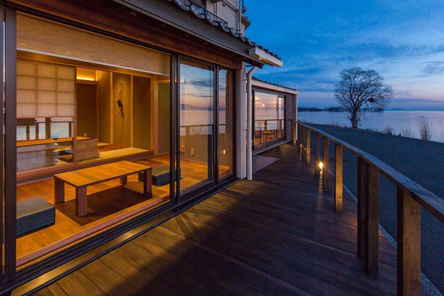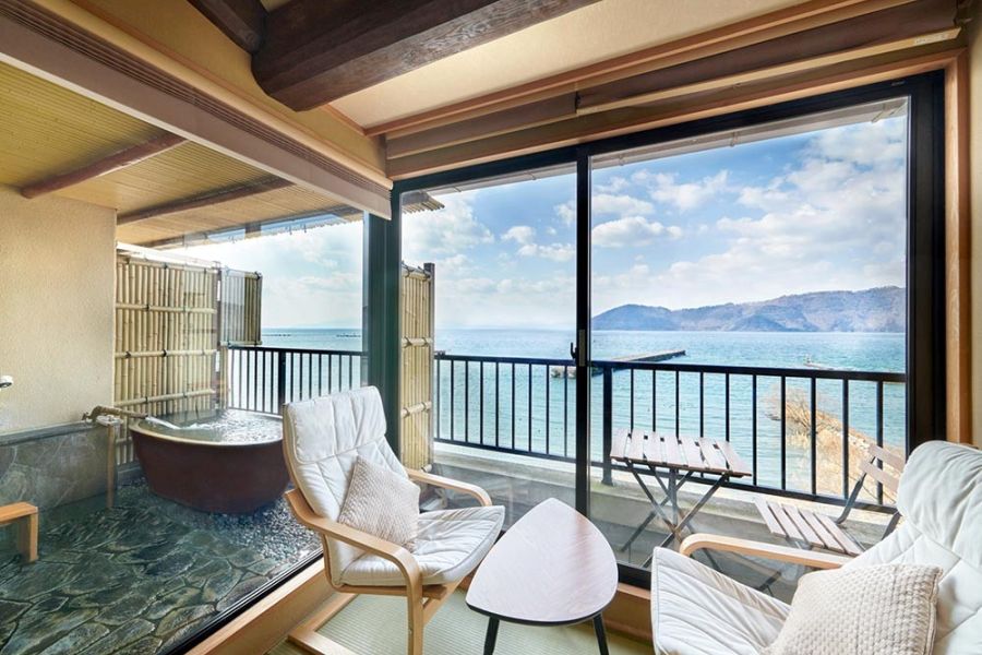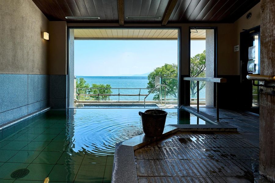 室内は落ち着いた雰囲気です。部屋に琵琶湖を眺める事ができる露天温泉風呂があり、時間を気にせずに入る事ができます。湖畔の静けさを感じられとてもリラックスできます。料理は懐石で手が込んでいます。料金はやや高め税抜き一人27000円位です。また行きたい。 The interior has a calming atmosphere. There is an open-air hot spring bath from which you can view Lake Biwa, so you can bathe without worrying about time. You can feel the tranquility of the lakeside and relax very much. The food is elaborate kaiseki. The price is a little high at about 27,000 yen per person excluding tax. I would like to go again.