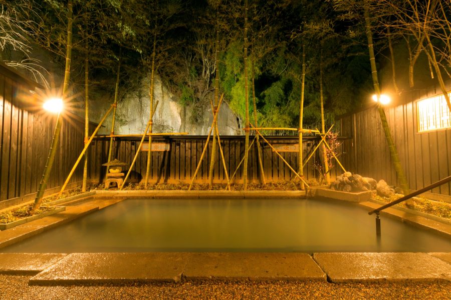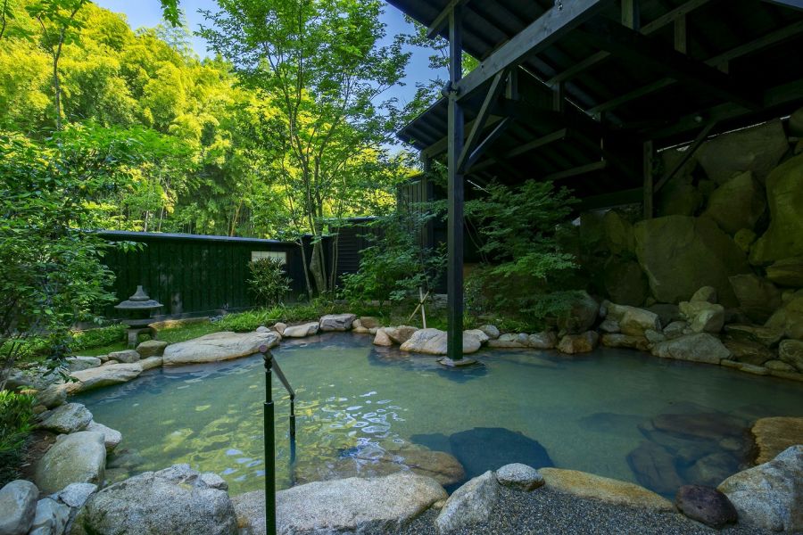20250810(日)11:00「黒川荘」の大浴場を日帰りの湯巡り手形でお借りした際の情報です。黒川温泉郷の中でも最も西端にある重曹泉の温泉となります。 営業10:30-21:00(受付〆20:30)。通常大人700円ですが、手形を利用すると実質500円になります。靴箱や脱衣ロッカーは無く棚のみで、貴重品ロッカーは100円有料。アメニティとしてボディソープ、シャンプー、コンディショナー、ドライヤーの備え付けがあります。ソープ類はフェニックスの「豆乳」シリーズ。 手形で利用できる浴場は「きり湯」と「たけ湯」の2つがあり、男女入れ換え制。今回は「たけ湯」側を利用。浴場は屋内にカラン3つと内風呂1つ、屋外にカラン2つと露天風呂1つがあります。体感で内湯は40℃、外湯は38℃ほどでした。露天からは角度によって柱状節理の屏風岩を眺めることができます。 泉質は低張性中性高温泉のナトリウム-炭酸水素塩•硫酸塩•塩化物泉で、いわゆる含食塩•芒硝-重曹泉というやや珍しい泉質になります。泉温72.8℃、pH6.9、溶存物質1205mg中にメタ珪酸/メタ硼酸が多く含まれ、知覚的には極微黄褐色微混濁の無味無臭。わずかに青みがかった緑白色の湯の華を伴うお湯で、トロミがあり、ベタ付きはほとんどなく、乾くとサラサラになるタイプでした。 館内は全体的に雅な雰囲気が漂っていて、ちょっと優雅な気分で寛げます。郷内の湯巡り対象施設の中でもお勧めの温泉だと思います。