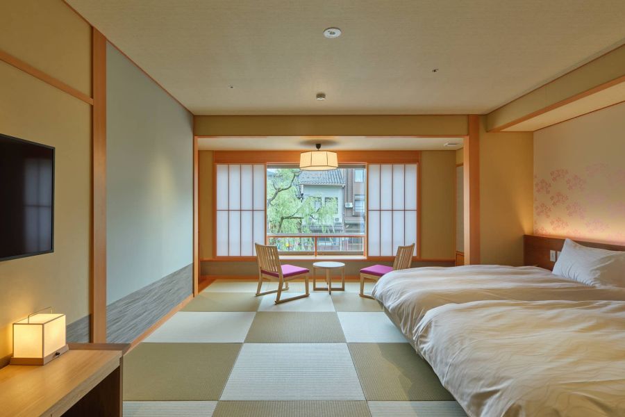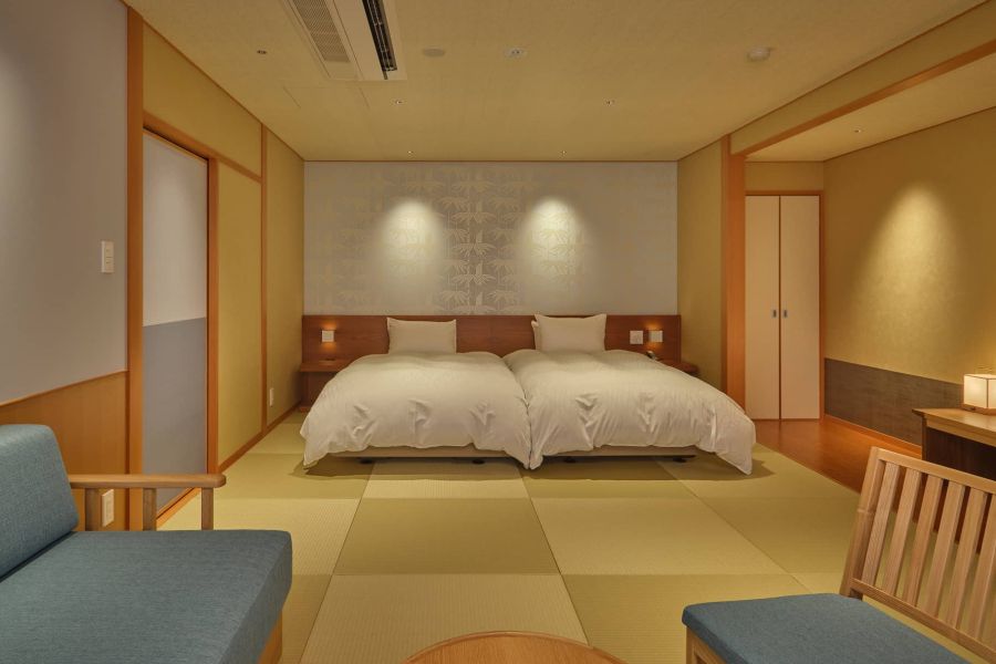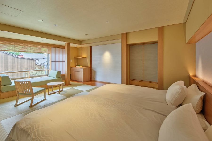 ひとつ上の隠れ家へ。柳が揺れる城崎温泉の中心にあなただけの隠れ家があります。木の優しさと畳の心地よさの中でまどろみ、貸切風呂では天然温泉や本格的サウナを嗜み、そして、趣溢れる庭園を愛でながら但馬ならではの朝食をご堪能ください。