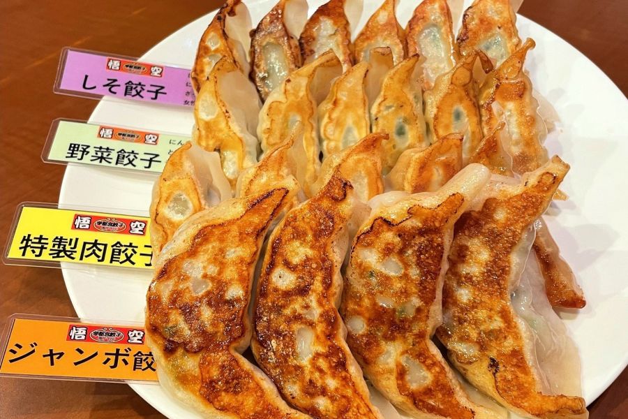 9月15日の祝日11:50ごろに餃子ストリートに到着。発券マシンに並ぶと、すでに店内飲食の順番は103番目となり60-90分待ち。そこでテイクアウトに切り替えて、肉、しそ、ジャンボ🥟をそれぞれ一人前ずつ注文しました。 お店の人によると、肉餃子とジャンボ餃子は中身が違うらしいので、それぞれ別で頼んだ方が楽しめるとのことで注文。20分ほどまつと店の前で店員さんが叫んで教えてくれるシステムのため、他の店をウロウロしていてもわかりやすかったです笑 🥟はストリート内では、もっとも肉汁溢れるタイプで、肉肉しい餃子を好むのであれば悟空が最も適切でしょう。正嗣は🫚サッパリ、みんみんは王道スタイルと比較すると、わたしのようなデブスタイルには最適でした。シソ餃子はそこまでシソは強くなく、肉餃子の途中で食べることで味変を体感し、さらに肉餃子に行くという楽しみ方をしました。ジャンボ餃子はサイズが1.2-5倍ほどあります。 肉汁が最もおおいので、食べ歩きを想定されている方は肉汁の噴出に備えましょう。美味しかったです😋