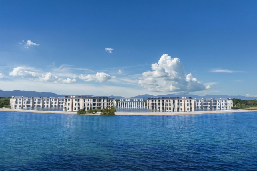 麗しき水の宮殿へ琵琶湖のほとり。現れたのは、水上に浮かぶ幻想的な別世界。それは、水都ベネチアも嫉妬する、かつてない“ ベネチアンモダンリゾート”。ベネチアの街並み、意匠、美意識を現代へと昇華させ、広大な水盤と美しい湖がひとつになった、まさに水の宮殿。水を打つような静けさ。息をのむような麗しさ。ひたすらに優雅な時間がただよう。覚めない夢がここからはじまる。