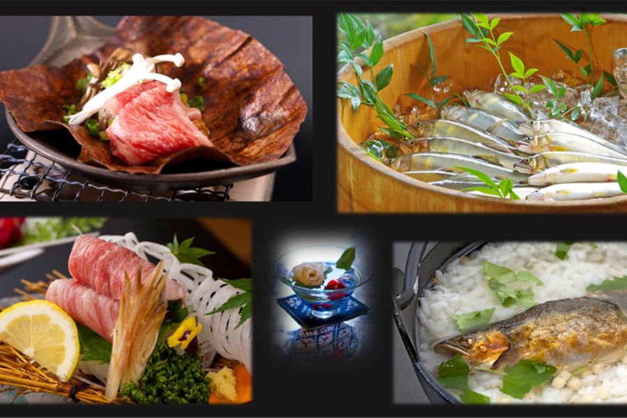 郡上八幡の奥座敷パワースポット、龍神の池の畔に建つ自然の中の料理旅館。川のせせらぎを愉しみながら温かみ溢れる館内で、至福のひとときを。全ての客室が、畳と木のぬくもり溢れる空間です。開放的な窓からは郡上の山々の自然の光景が広がります。四季折々の郡上の大自然で育まれた、旬の素材を用いて風味と彩り溢れるお料理をご提供いたします。当館は大和町内の一番南に位置し、郡上八幡へもっとも近い宿。天空を駆ける霊獣、三匹の龍が棲むとされる池はスピリチュアルな力を持っているとされる。