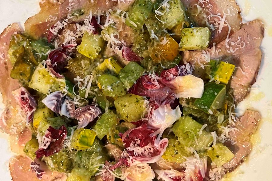 ディナーでいきました😊 4500円のコースを頼みました。 冷製パスタは酸味が丁度よいアクセントになって良きでした。リゾットは赤ワインに合います。豚のお肉はじゃがいもと一緒に食べると美味でした😉 今度は涼しくなったら、歩いて行きたいです🙌
