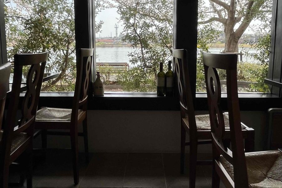ランチで訪問。5000円のコースをいただきました。内容、ボリュームともに満足。地元の食材を多く使っているとのことでした。お店の雰囲気もよく窓の外には瀬田川が見え、カヌーをしている人の姿も。