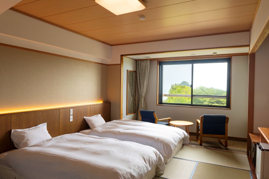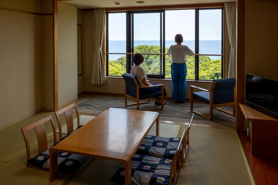 高台からの海の眺めが良いです。風呂からもよく見えます。 夕食は、コースメニューですが、ご飯、味噌汁、サラダ、デザートは自分で取りに行く形で、バタバタしている感じです。料理もこれと言って美味しいというものはありません。朝食はビュッフェ形式で、更に混み合います。海鮮はありましたが、それほどではありません。 部屋は綺麗に掃除されてますが、やはり休暇村のレベルです。床間に冷蔵庫があって寝てる間、煩かったです。 風呂は露天風呂から海見えるし気持ち良かったです。 総じて、家族旅行向きですが、コストパフォーマンス的にはイマイチです。