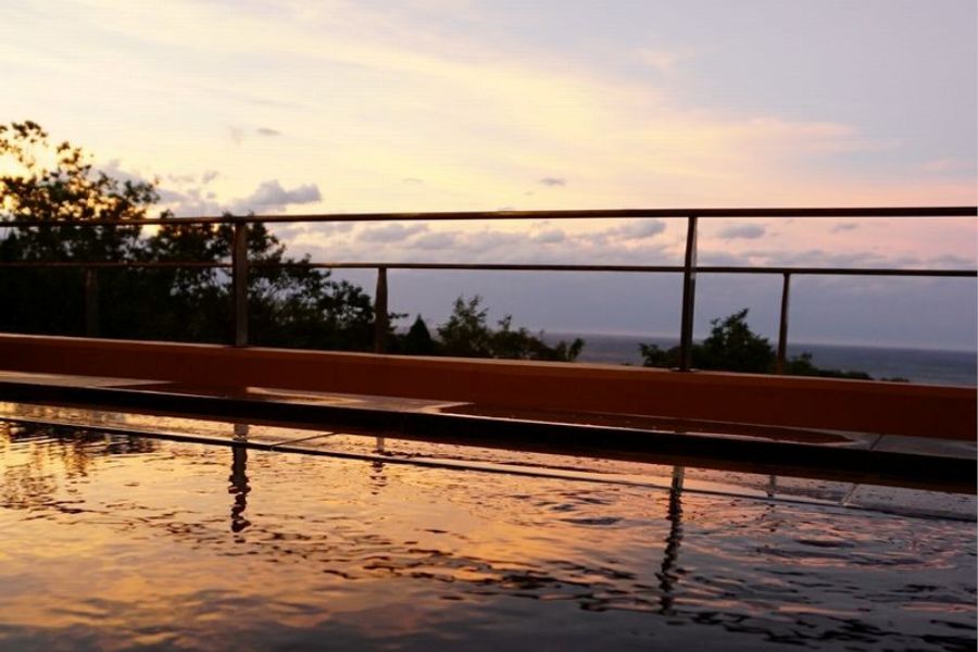 兵庫県最北端、山陰海岸の入り江を見下ろす小高い丘に建つ休暇村竹野海岸。海と山に囲まれた自然豊かな環境は、春の「鬼海老」、夏には「白イカ」、秋は「香住蟹」、冬は「松葉蟹」、さらには「但馬牛」など1年を通して地域の旬の食材をお楽しみいただけます。大浴場は、海が見える露天風呂と内湯、サウナを備え、敷地内に自家源泉を持つ天然温泉です。温泉大浴場をはじめ、客室やテラスからは日本海を一望でき、夏の漁火や四季折々に変化する日本海の景観が楽しめます。