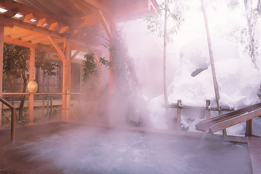 湯沢温泉街の中心に位置し、豊かな自然に囲まれた宿。越後湯沢駅から徒歩2分とアクセスも抜群です。自慢の温泉は、各2か所から成る男女専用の趣の異なる大浴場と、2つの貸切風呂で湯めぐりをお楽しみいただけます。お食事は、ライブキッチンで提供される握り寿司やステーキ、海鮮浜焼きが自慢の和洋中バイキングに舌鼓。日常を離れた特別な空間で、心ゆくまでお寛ぎください。