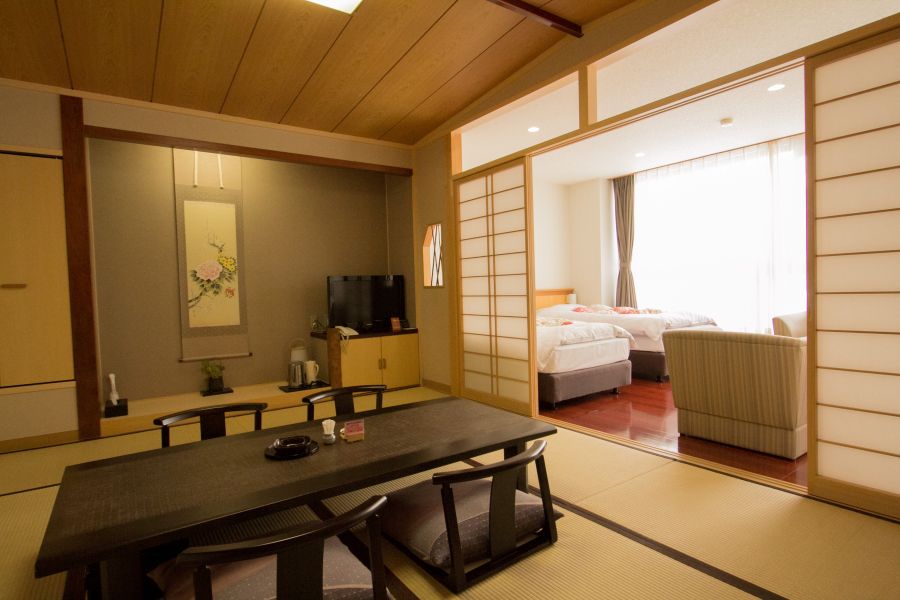 お盆真っ只中大人ばかり家族4人、2部屋利用、2泊でお世話に成りました。チェックインより1時間近く早く来たのにも関わらず、ホテル玄関に誘導され車の鍵を預け受入れて貰えました。着いた瞬間から2人の男性スタッフは笑顔で迎えて下さいました。チェックインまで時間が有るので当然ながら部屋には通して貰えませんでしたがロビーが広く、無料でコーヒーを飲みながら、ゆっくりしました。部屋は古くとも清潔でしたし、洗面所の紙コップも包装してあり、冷たいお茶がポットに入っているし、細かい心配りを感じました。お食事は人も多かったですが、ちゃんと次々に追加され、食べたい物を沢山食べる事が出来ました。夜は寿司、朝はおにぎり〜最高でした!!パンもスイーツも沢山有り食事100点満点!!温泉は2泊中5回入りました。宿泊客が多くとも分散して入っているのか、混む事なく楽しめました。ただ運悪く荒い場で奥に居たにも関わらず、アブに噛まれて痛い思いをしました。何らかの対策をして貰えると有難いです。たまたま湯沢の花火大会の日で部屋から綺麗に花火を見る事も出来て最高でした。コインランドリーに機械が2台有り2日間とも利用。立地も良く、遊びに行け、コンビニも目の前、私は車で行きましたが、レンタカーも目の前、交通機関を利用して来ても良さそうです。旅行が好きで家族で毎年色んな県を回りますが、おもてなしをとても感じたホテルでした。また来たいと思えました。帰宅後も温泉効果でしょう肌の調子が良かったです。お部屋のお菓子が美味しくお土産に買って帰りました。とても素晴らしいホテルでした。