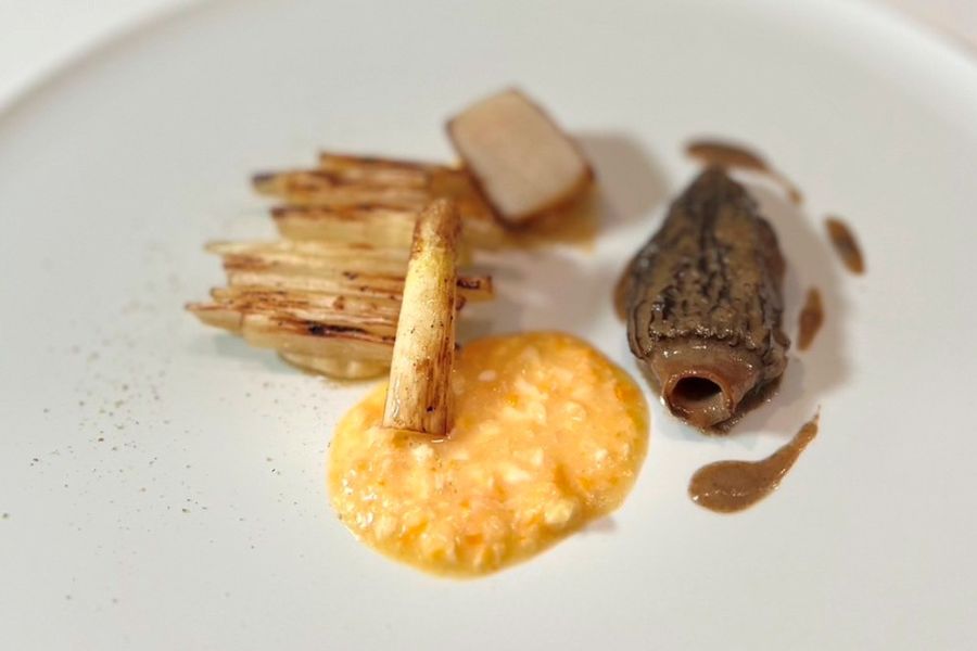 西麻布のフレンチレストラン「TAKUMI」、まさに“技”が詰まった一皿一皿に感動!都会の喧騒を忘れさせる洗練された空間で、丁寧に構築された料理が五感を満たしてくれる最高の体験でした。 中でも心を鷲掴みにされたのが、アミューズ・ブッシュの2種。見た目は控えめながら、口に入れた瞬間その完成度の高さに驚かされます。 まず温製の「キャビアとエシャロット パルメザンチーズ風味のフレンチトースト」。フレンチトーストの香ばしさに、濃厚なパルメザンの香りがふわっと重なり、そこにキャビアの塩味がアクセント。あまりの美味しさに、思わずにやけてしまいました。 そして冷製の「キャビアのジュレ寄せ 完熟アボカドとライムのタルト」。この組み合わせがもう天才的!キャビアの塩味とジュレのなめらかさに、アボカドの濃厚さとライムの爽やかな酸味が完璧なバランスで合わさっていて、口の中が一気に華やかに。まさに「一口の芸術」。 スタートの一皿でここまでテンションが上がるレストラン、そうそうありません。料理の構成、技術、素材の活かし方、どれをとっても一級品。TAKUMI、間違いなく再訪確定です!