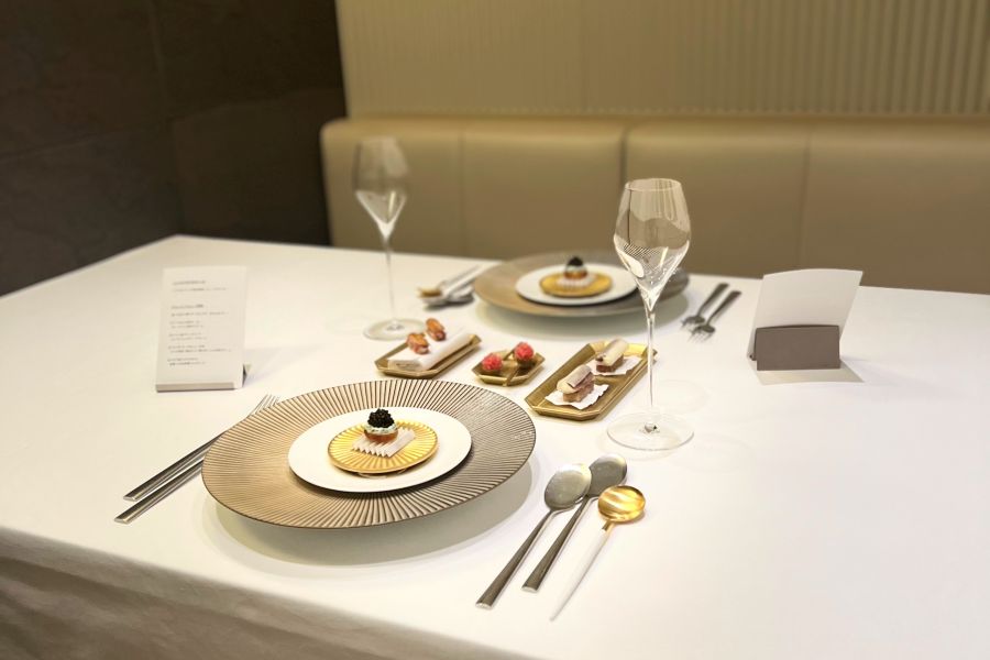 乃木坂駅から徒歩10分かからないくらい、 西麻布交差点近くにあるフレンチレストラン。 メッセージプレートが可愛いことでも有名ですが、お料理も5年連続ミシュラン取られている実績。 しかもシェフは28歳の時からオーナーシェフとしてやられているのすごいね。 休日のディナーに予約して伺いました。 テーブル4卓と席を絞ってゆったりした空間です。 個室もあるけどそっちも2-4人のしっぽりした個室だった。 コース19,800円 最初の一皿の後、アミューズのフィンガーフード5種、前菜3つ、お魚メイン、お口直し、お肉メイン、デセール2種、小菓子 というクラシックな流れ。 それぞれの料理が提供される前に、それに使用している香りの素材とかを単体で持ってきて香り確認させてもらえるのも面白い。 前菜で子牛と紅茶を合わせるのが珍しくて 味もおいしかった。 リードヴォーも美味しかったです。 魚メインの、魚の横にソースとしてあるブイヤベースがめちゃ美味しくて印象に残ってる。 メインはフランス産鳩の炭火焼き。 胸肉ともも肉の食べ比べです。 レバーのような香りもありしっかりとジビエ感のあるハトで美味しい。 シェフのお人柄も素晴らしくて、確かにプレートが可愛いというのもあるけどそれ以外の要素もお祝いにぴったりのお店ですね。