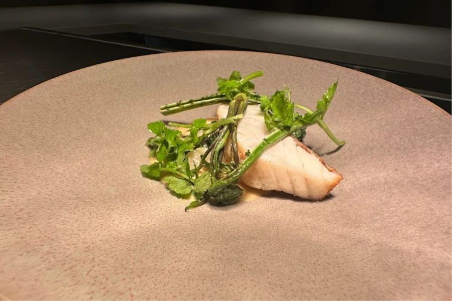 全体を通して感じたのは、身体にすっと染み込むようなやさしい美味しさ。 フレンチと聞くと、重ためのソースやお肉料理を想像しがちですが、こちらのお料理は魚介やお野菜が中心で、最後まで軽やかに楽しめました。 アミューズから、とうもろこしと玉ねぎのフランでスタート。ほんのり甘くて、口当たりがとてもなめらか。 続く白アスパラとハマグリ、穴子と茄子など、どれも素材の持ち味が生かされた構成で、華やかすぎないのに印象に残る味わい。 お魚料理はサクラマスと自家農園の野菜たち。それぞれの野菜にちゃんと存在感があって、シェフの野菜への愛情が伝わってくるようでした。 メインは花悠仔豚に万願寺とうがらしとジロール茸。力強さと優しさのバランスが絶妙で、野菜との一体感が素晴らしかったです。 デザートも軽やかで、パイナップル×紫蘇のパンナコッタやチェリーチョコとレモンバーベナなど、香りの余韻まで丁寧に作られていました。 全体的にとても繊細な構成で、五感で味わう“静かな贅沢”という言葉がぴったりのお店。 落ち着いた空間で、ひと皿ひと皿と向き合いたくなるフレンチでした。