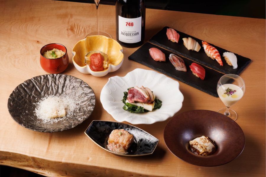 鮨屋の新しい可能性を魅せます!鮨屋からさらに新しい形へと進化を果たしたのがこの‟浩也 東京前”。赤酢のシャリが土台となった鮨に加え、枠にとらわれない自由な発想から生まれる逸品を織り交ぜたコースで勝負。浩也の代名詞とも言える‟ペアリング”もさらにパワーアップしております。和食を軸に洋食や中華など様々なジャンル・食材・調理法との融合によって生まれた唯一無二な世界を是非お楽しみください。
