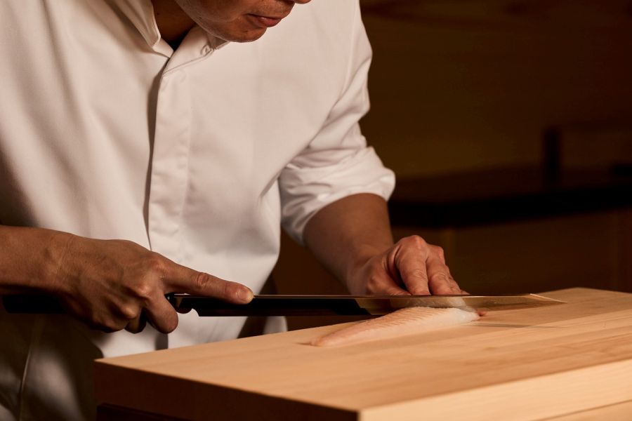 ●シェフ:坂本 慎吾 氏(さかもと しんご)1983年、東京都出身。子供の頃から両親と共に日本料理に親しみ、四季折々の食材や調理法に興味を持つ。料理人を志し、辻調理師専門学校を卒業後、ミシュラン3つ星の日本料理の名店で研鑽を重ね、2016年に同店の料理長に就任し、腕をふるう。2021年、南青山に伯雲を創業して独立。素材への柔軟なアプローチにより、その持ち味を頂点に導く料理は、創業年にミシュラン星付き店になるなど、食を愛する人々を魅了する。まだ見た事のない素材の新しい顔をみせる事が出来ましたら幸いです。日本料理の滋味深い美味しさを心ゆくまで、お愉しみ下さいませ。