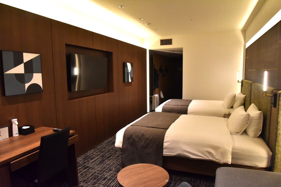 昭和なホテルをリノベーションした感じ。 ただ、海側は景色も良いし悪くない。 19階は大浴場があり、サウナもありよいが、日帰り温泉の1700¥は高いだろうなあ。船🚢おりてどつしても使いたい方には良いのだろうか。サウナややぬるめ。一部喫煙室が未だにあるのでタバコ吸わない人は要注意。