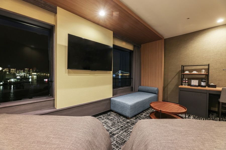 ゆりかもめ竹芝駅から直結で、アクセスはとても便利です。 フロント前は吹抜けになっていて、緑が沢山あってとてもいい感じ♪ WelcomeDrink として準備してくださっていたデトックスウォーターも沢山のフルーツが入っていて、とても美味しかったです。 チェックインは、大浴場等の説明が入るからか、同じタイミングでチェックインする人が重なってしまうと恐ろしく待ちます。 お部屋は綺麗でしたが、クローゼットもなく、ベッドの上に乗らないとTVも見られません。 ユニットバスは全体的に古いです。 今回は海側でも高層階でもなかったけど、窓から見る景色は東京っぽさを感じられるかも?(笑) お部屋によってはにエレベーターを乗り換えないと高層階いけないのが一番不便でした。