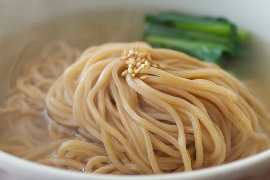 2024.07 東京メトロのスタンプラリーで広尾へ。 実は広尾は初めて。 何かいい店は無いかと調べたら、食べログ百名店の店を発見。 夜勤明けで11時30分開店の店に1分遅れで到着。待ちなしで中に入れた。 注文は「蒸し鶏と千寿葱の冷やしつけ麺」、「北京ダック(ランチ限定+400)」、「青ザーサイと季節野菜の和え物」にした。 まずは、お盆に乗せられたザーサイが到着。店内の雰囲気から、掻き込んだりは出来ないのでゆっくりと和え物を楽しむ。ザーサイの食感がいい。味も好み。とても美味しかった。 次に北京ダック。以前中華料理店で食べた時と同じような味。高いのでリーズナブルに少量食べれたので嬉しい。しかもランチの時は限定で半額以下へ。 そして、つけ麺の着丼。 麺は店員さんのオススメのごぼう麺にした。麺だけ食べると本当にごぼうの味がした。スープも出汁が効いてて、そのままでも薬味を入れても美味しくいただけました。 他にも山椒など沢山の種類の麺があったので、次回は他の麺やラーメンを楽しもうと思います。少し高いが季節限定の坦々麺も気になりました。 フード以外では接客が素敵でした。百名店に選ばれたのも頷けます。