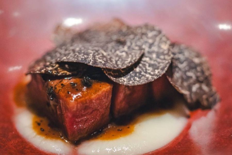 29の日イベントで鮨mさんにお伺いしました。 テーマは熊本あか牛✖︎鮨そして日本酒、ワインのペアリング ・低温調理あか牛ユッケ握り ・あか牛ももの生ハムと黒米 ・煮こごり ・あか牛とうにの磯辺揚げ ・トリュフアイスの天ぷら ・サイフォンで香り付けしたコンソメと大根 ・あか牛ロースの握り燻製塩 ・あか牛とうなぎとトリュフ バルサミコソース 付け合わせはかぼちゃのピュレ ・牛すじカレー大盛り✖︎2 ・巨峰アイスシャンパンソース 煮こごりすごく美味しくてお酒が進みまくり 熱々ごはんに乗せても間違いないやつだよなぁと笑 うにと牛の磯辺揚げ絶妙な揚げ具合でした😋 コンソメは濃厚でペアリングの酸味が強めな赤ワインとピッタリ。 カレーは大盛りでいただきましたが、スパイスが素晴らしく牛すじもプルプル、お味は濃厚で大満足でした😋 通常営業も良さそうなのでまたお伺いしようと思います。