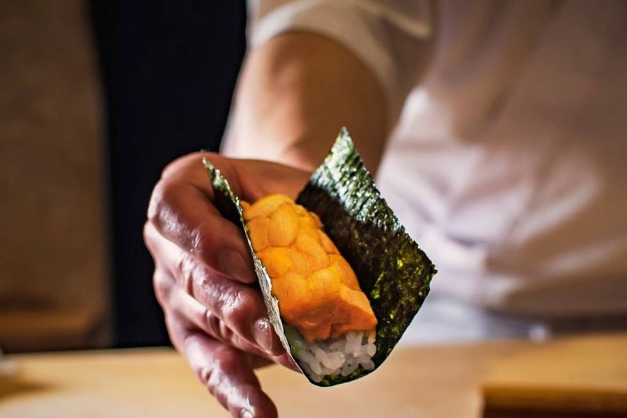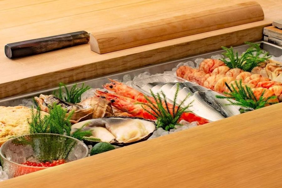 鮨 海心では、本物の鮨、至高のつまみ、皆様のプライベートを守る空間をご提供しております。旬の魚を使った鮨には無駄なものが一切なく、基本に忠実で丁寧な仕事が施されております。つまみも豊富な当店では20種類ほどの料理を少量ずつお出しし、お食事の始まりから終わりまでずっとお楽しみいただけるよう、目でも舌でも楽しめる盛り付けにもこだわってております。全20席の店内は通常のカウンター席の他、“カウンター個室”もご用意。こちらは他のお客様と顔を合わさずに入店・退店ができるため、お客様のプライベートを完璧にお守りすることが可能です。どうぞ皆様、寛ぎの空間でゆったりとお食事をお楽しみください。