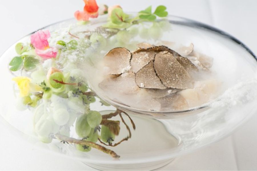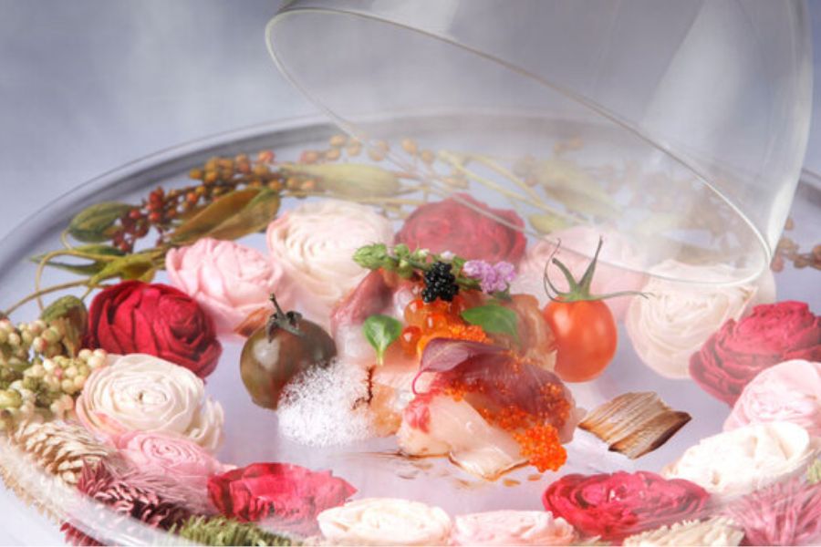 フレンチとイタリアンの融合。 エンタメ性があるラグジュアリーなイノベーティブレストラン。 赤坂の氷川公園の近くでしたが 隠れ家が感ある通りにありました。 インパクトある器を使用。 透明な器の中に花が入っていたので、料理が一層華やかに見えました。 料理も飾り付けもとても素敵で、テンション上がります。 エンタメ性もあり、コースの初めから最後まで楽しめました。 1日限定8組の完全予約制。 席と席は離れているので、他の方を気にせず話ができてよかったです。