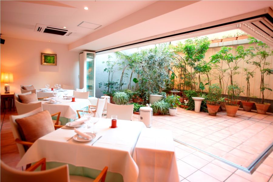 中庭が見えるテラス席(屋根あり)が素敵なリストランテです。 プリフィクスコースorアラカルトなので、メニューの中から料理を選ぶのがとっても楽しいです。 ディナーとメニューは同じですが、土日はランチの時間帯から通しで営業しています。 女子会にもデートにもおすすめのお店です。