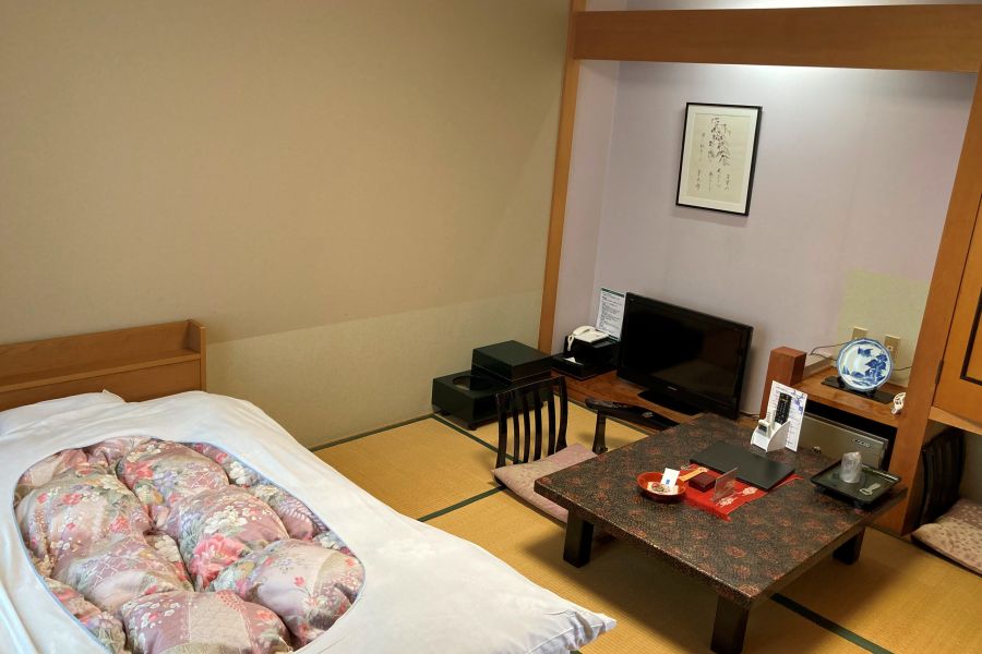 2025.6.20 今回の旅の宿は、黒石市落合温泉にあります、花禅の庄です。予約後にBS‐TBSで紹介されており予習はできています。とても楽しみにしていました。建物は5階建てですがこじんまりとしており、何故かほっとします。 廊下全体が畳敷きになっており、気持ち良いです。4階の部屋に通されまして、早速風呂に行きます。風呂は渡り廊下を通り男女隣り合わせになっています。内風呂の他、露天風呂もありました。思いのほか熱くありません、夏場は少しぬるめでしょうか? 食事は2階の大広間、オールインクルーシブになっているので、ビールサーバー、地酒が置かれています。 食事は津軽の郷土料理ということで、そばもやしのサラダ、ホヤ、イワナの塩焼き、ほたてと野菜のせいろ蒸しと盛り沢山、川魚が苦手な女房もイワナには感激していました。 朝食もおかずがたくさんあって、腹はち切れそうでした。昨夜の帆立の炊き込みごはんといい、ごはんとても美味しかったです。お米は青天の霹靂だそうです。 ご馳走様でした。 お勧めです。