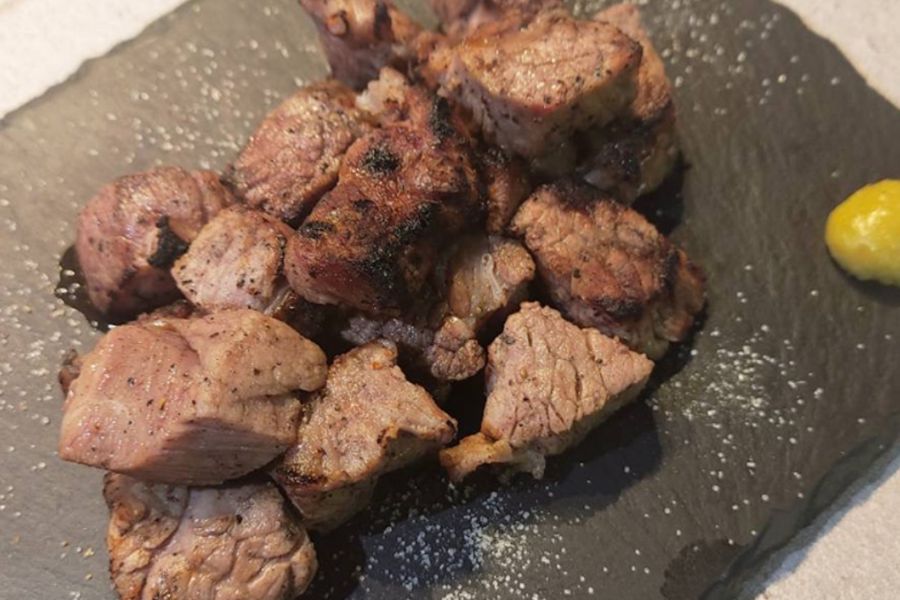 みろく横丁で唯一お肉の専門店です。ステーキ・ハンバーグ・肉の握りなど取り扱っており、八戸の毬姫牛を使用しています。その他にも日本酒 八仙に漬けたステーキ・唐揚げなどもあり、たくさんの有名人も来店しております。