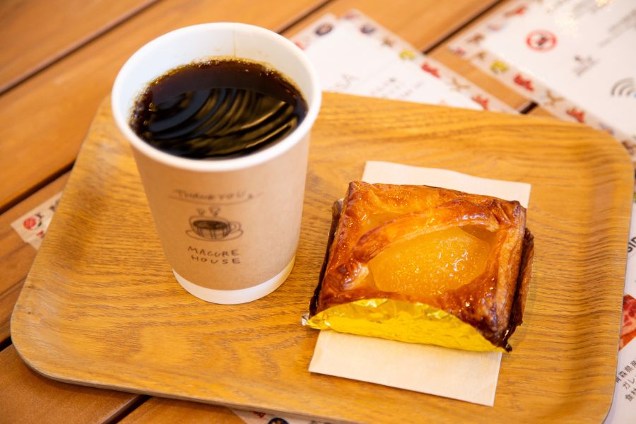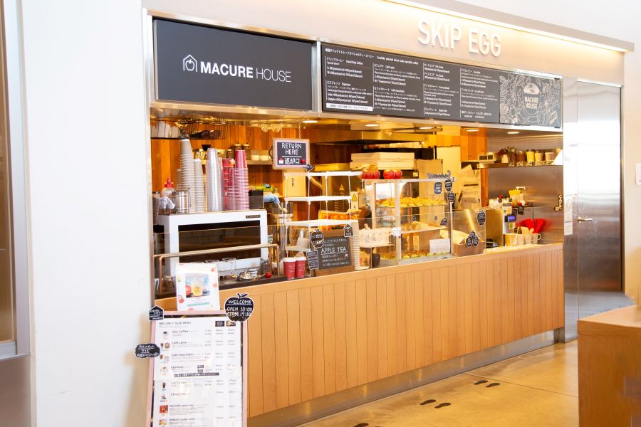 青森駅すぐそば、観光スポット「A-FACTORY」内にある『MACURE HOUSE』。サクサク生地に爽やかなりんごの酸味が人気のアップルパイを、毎日焼きたてでお届けしています。アップルパイにぴったりのオリジナルコーヒーは、世界の流通量5%程と言われるスペシャルティコーヒーを豆から挽き、一杯一杯心を込めて丁寧に淹れています。海を眺められるイートインスペースで、ちょっと贅沢なひとときをお過ごしください。皆さまのご来店を心よりお待ちしております。