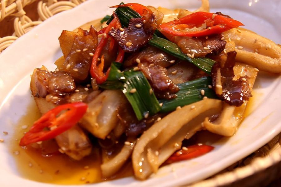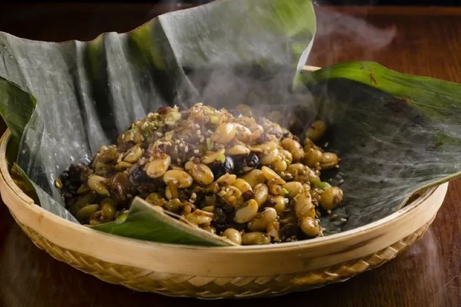 中国の家庭料理をシェフがアレンジ 聞いたことも食べたこともないはような料理のオンパレード でも美味しい 前菜は冬鯖のスモーク 細切り豆腐白菜胡麻ソース等 山東菜の水豆豉炒め 雲南省ポルチーニ茸入り春巻 と牛肉新生姜ピクルスの煮込み 真鱈白子の唐辛子醤油 豚肉細切り貴州糟辣椒辛味噌炒め 特製中華ハンバーグ イカ春菊の香り和え 巴馬長寿村火麻オイル仕立て おこわのような食感 リクエストの麻婆豆腐
