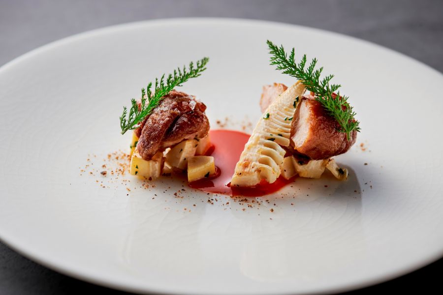 国内の数々のミシュランの星つきフレンチで経験を重ねたシェフが、織りなす渾身の料理は、緻密かつエレガント。地元食材を中心に、全国各地の厳選された食材の可能性に目を向けた自由な表現で、モダンフレンチを提唱していきます。スタイリッシュなカウンターで、美しい花皿から始まる料理をお楽しみください。