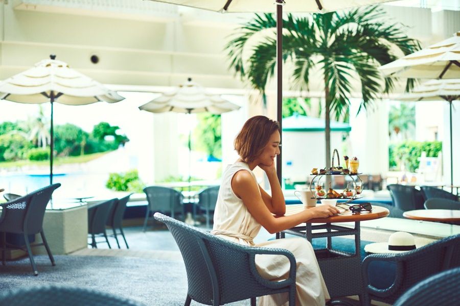 開放的なオープンエア・カフェ。軽食、お飲み物、デザートなど様々なメニューをご用意しています。海からの爽やかな風を感じ、リゾート感溢れるガーデンプールを眺めながら、特別な時間をお過ごしください。一口サイズの軽食にティー・コーヒーのセレクションがついたオーシャンカフェオリジナルのアフタヌーンティーセットもぜひお試しください。