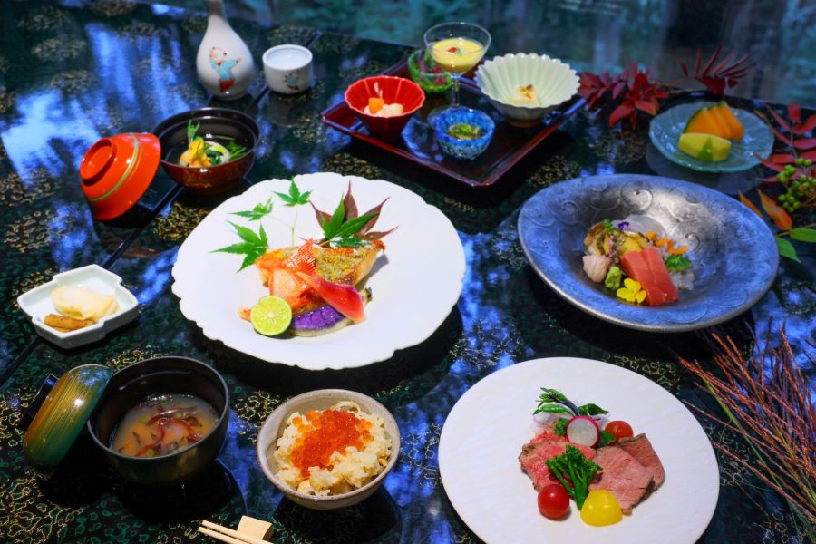 奥入瀬渓流から車で30分ほどで到着、平日でしたが案外近くて行きやすいです。 定額タクシーでの移動でしたが 通りすぎそうになったほど(笑 山岳ホテルの風情がシックで素敵でした(私は 期待通りでした‼︎) 館内のあちこちに美術館のように作品もあり 歴史の感じられる建物です。 フロントやサービス、送迎のスタッフも さりげない奥ゆかしい気遣いがあり ホテルの雰囲気らしい心地よさでした。 館内の大浴場も窓が大きく内湯ながら半露天風呂風の景色が湯船から満喫できました。 小さいですがエレベーターはあります ただ足腰のお悪い方は 館内の移動が少し不便かも と感じました。 レストランの照明や内装も素敵で 窓越しの夕暮れから日没へと 素晴らしい夕食時間でした。