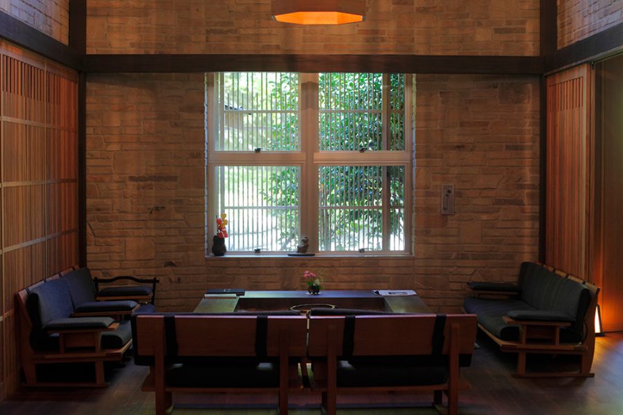 四季折々の風景とお献立を楽しみながら、何もしない贅沢を味わえるおこもりの宿。館内は畳敷きの回廊となっておりますので、素足のままでもお過ごしいただけます。玄関からロビーにいたる吹き抜けには、千本格子をモチーフとした厳かな和のシャンデリア。さらに歩みを進めると、神代けやきの囲炉裏。ココロもカラダも満足する。花扇ならではのひととき。飛騨の地で育んだ花扇ならではのおもてなしを箱根・強羅でご堪能ください。