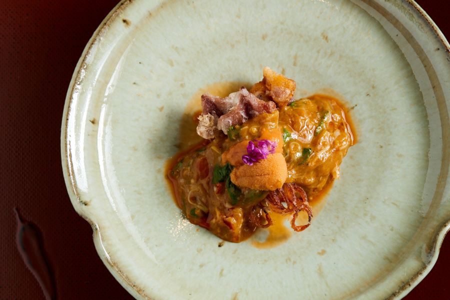タイ出身の店主が全国の名店を食べ歩き辿り着いた、繊細な日本料理の技術とタイのスパイスを掛け合わせた逸品をご提供。メニューは各地の料理人や生産者との繋がりを活かして仕入れる、最高級の旬食材を使用したおまかせコースのみ。“足し算”のタイ料理と“引き算”の日本料理が織りなす美食を引き立てるワインも豊富にご用意。美会だからこそ味わえるオリジナル料理とワインのペアリングを、洗練された空間でご体験ください。