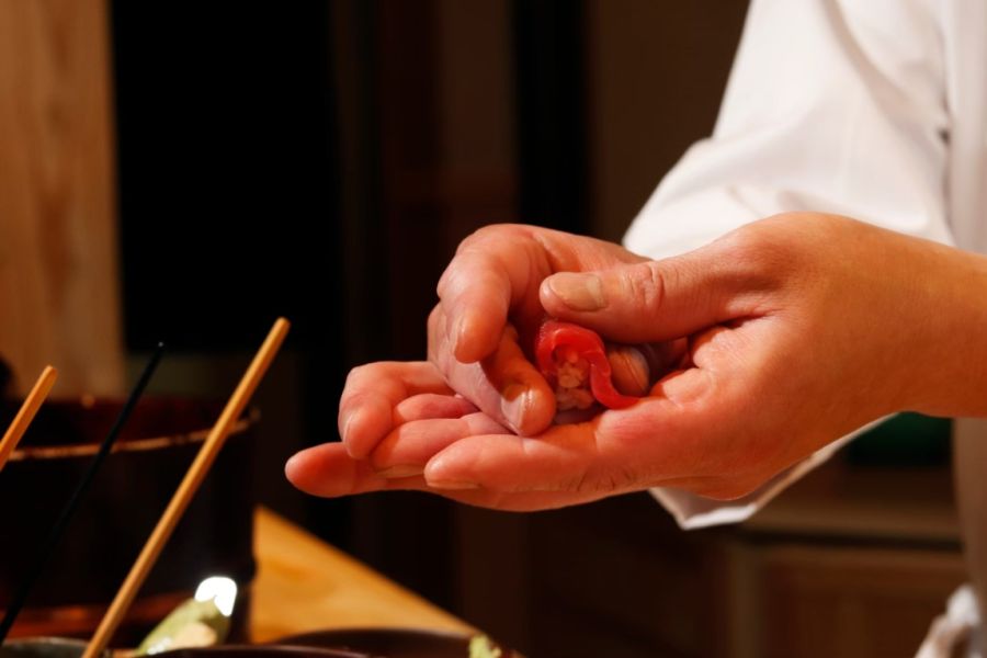 美味しい、最初から最後まで美味しい。一つ一つ先付けから最後の汁物まで丁寧に仕事をしてあり非常に美味しい。 特に、毎度いただく「蛸の柔らか煮」は絶品だと思う。蛸がやわらかく煮付けてあり、それでいて蛸の風味もしっかりと残っています。 また、握りの前に板場の後ろにある焼き場で炭火であぶった季節の野菜と魚(鮎)は、パリッとしていながら、中はジューシです。 握りは、おそらくシャリに空気を入れてると思うのですが、 置いた時に、ふっと沈みます。口の中でもパラッとふんわりとバラけてネタと丁度良く混ざります。 また、季節によりますが、この時は五島列島の赤ウニをいただき、非常に美味でした。