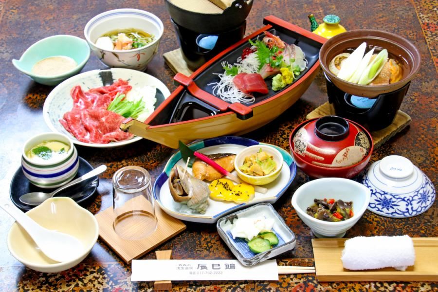 浅虫温泉 辰巳館は、昭和13年創業の歴史ある温泉旅館です。全室から陸奥湾と湯の島を望むオーシャンビューが自慢で、特に夕暮れの景色は格別です。館内は数寄屋造りの趣を残し、暖かみのある色調がどこか懐かしい居心地の良さを提供しながら、上質な滞在を実現させます。お風呂は浅虫温泉の天然温泉100%源泉かけ流しで、名物の女性用庭園露天風呂をはじめ、情緒豊かなお風呂で心ゆくまで癒やされます。お食事は新鮮な魚介が中心の磯会席料理をご賞味いただけます。古き良きものを大切にし、心温まるおもてなしでお客様をお迎えいたします。