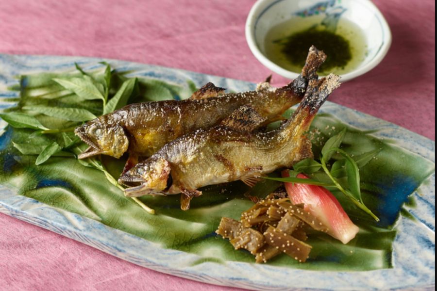 夜にコース料理をいただきましたが、空いていたのでカウンターがよかったな。先付の煮あわび、イクラのダシ漬けをいただき早速日本酒。子持ち鮎の有馬煮、鰹にマツカワガレイの刺身と魚中心の和食。少し変わった魚がまた美味しい。炊き込みご飯は舞茸でした。