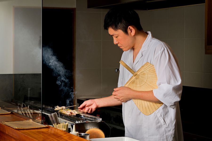 2021年開業、ミシュラン2年連続掲載店。麻布十番の暗闇坂に佇む「焼鳥 ひなた」。扉を開けると、木の温もりに包まれた洗練された空間が広がります。全国で3店舗のみで味わえる高級希少鶏の松風地鶏を含むおまかせコースを提供しており、一串ごとに丁寧に火入れされた焼鳥と、常時300本以上完備されたブルゴーニュワインのマリアージュをお楽しみいただけます。落ち着いた雰囲気の中で、熟練の職人が織りなす絶品のコースをご堪能ください。